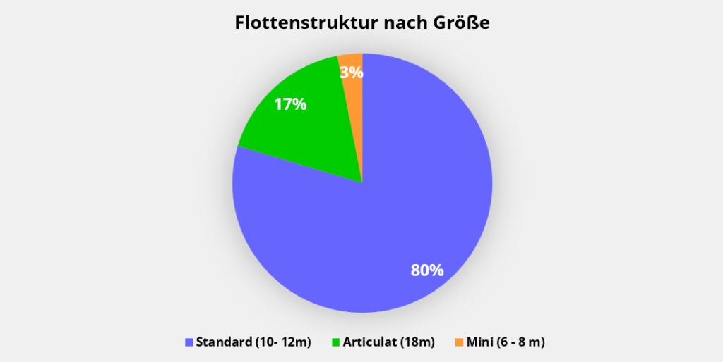Größe Anzahl der Busse Prozentsatz Standard (10-12m) 129 80% Gelenkbus (18 m) 28 17% Mini (6-8m) 5 3%