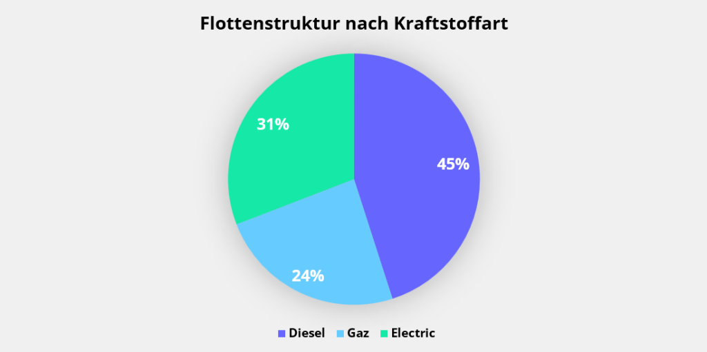 Kraftstoff Anzahl der Busse Prozentsatz Diesel 73 45% Ga s39 24% Elektrisch 50 31%